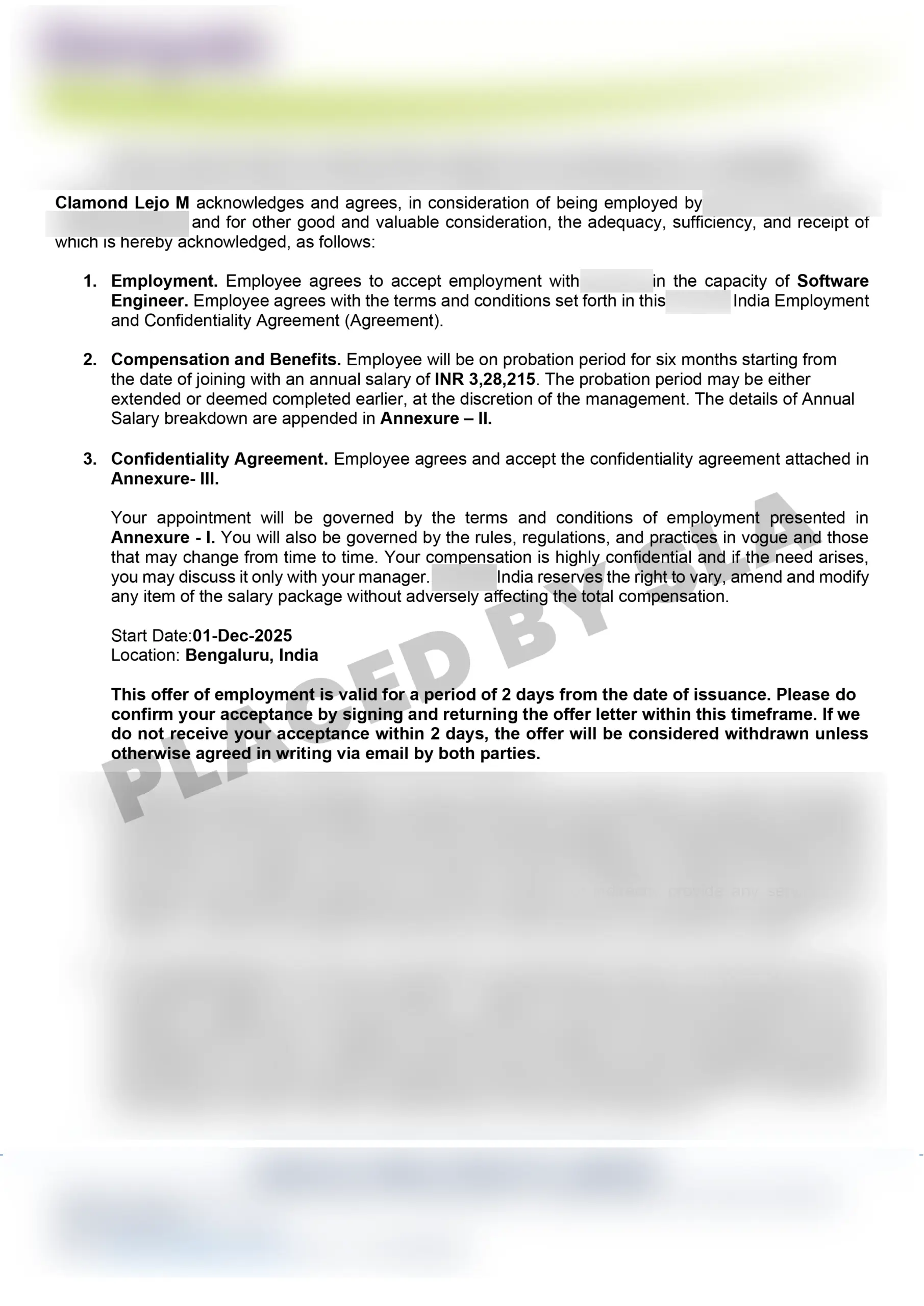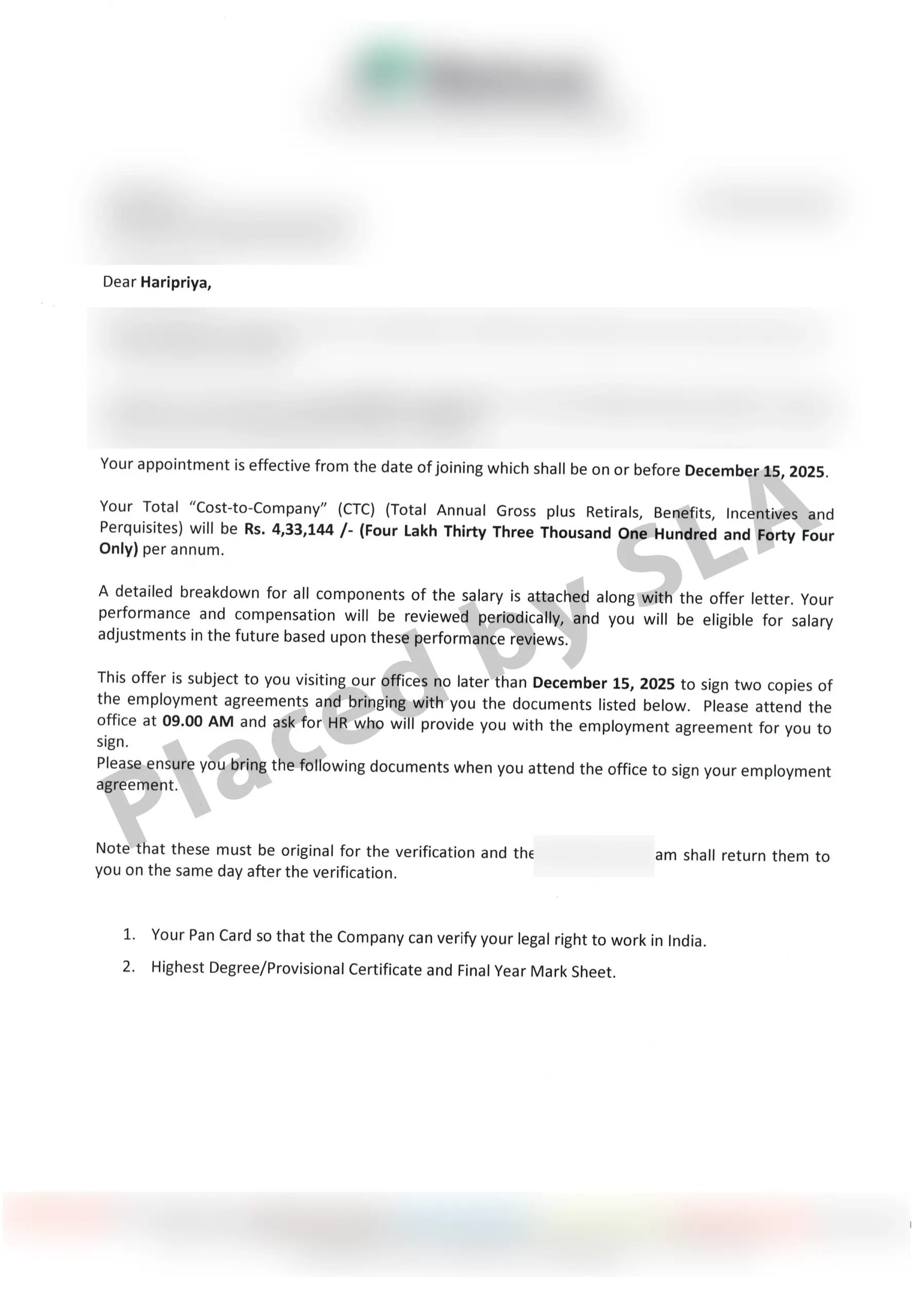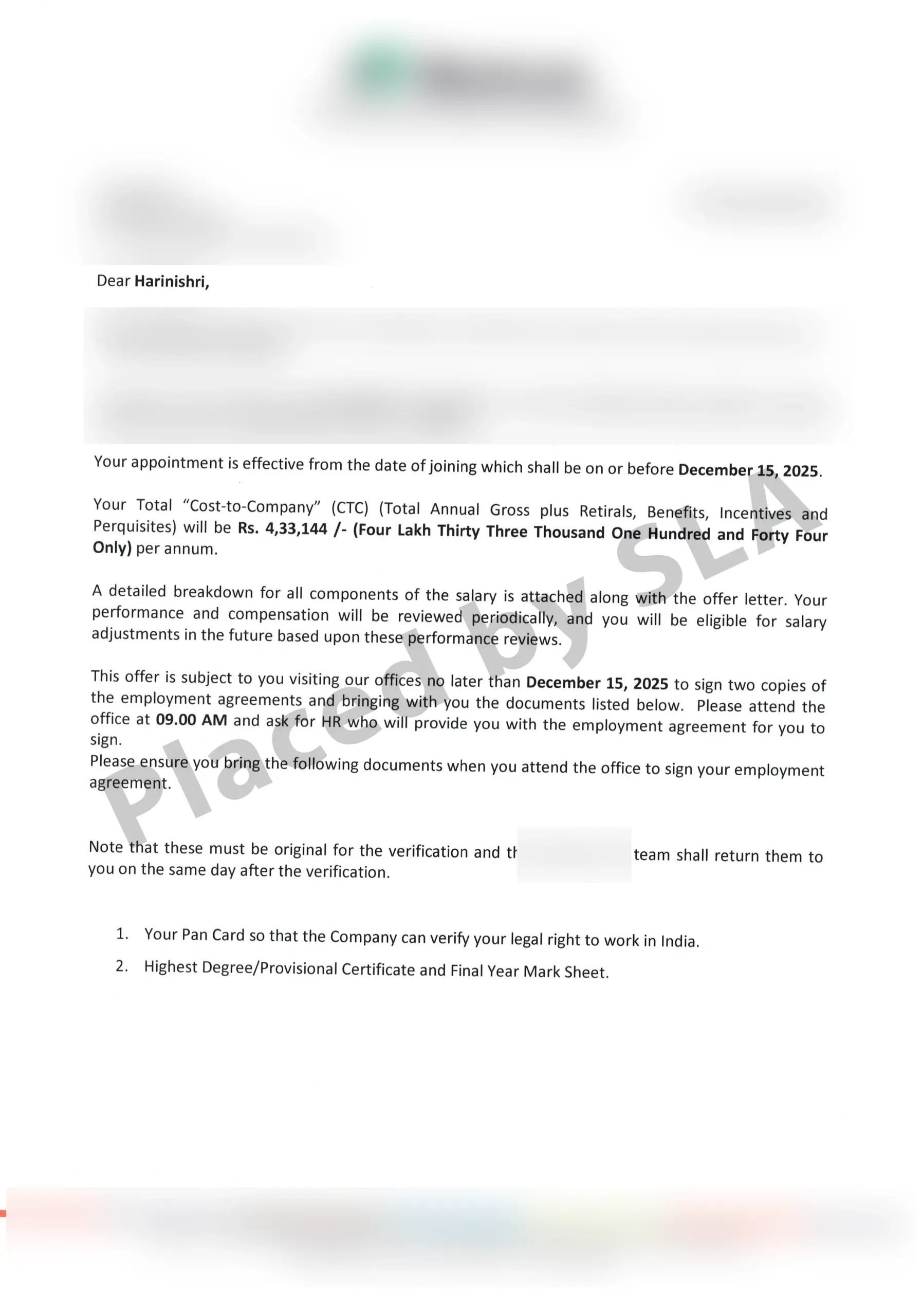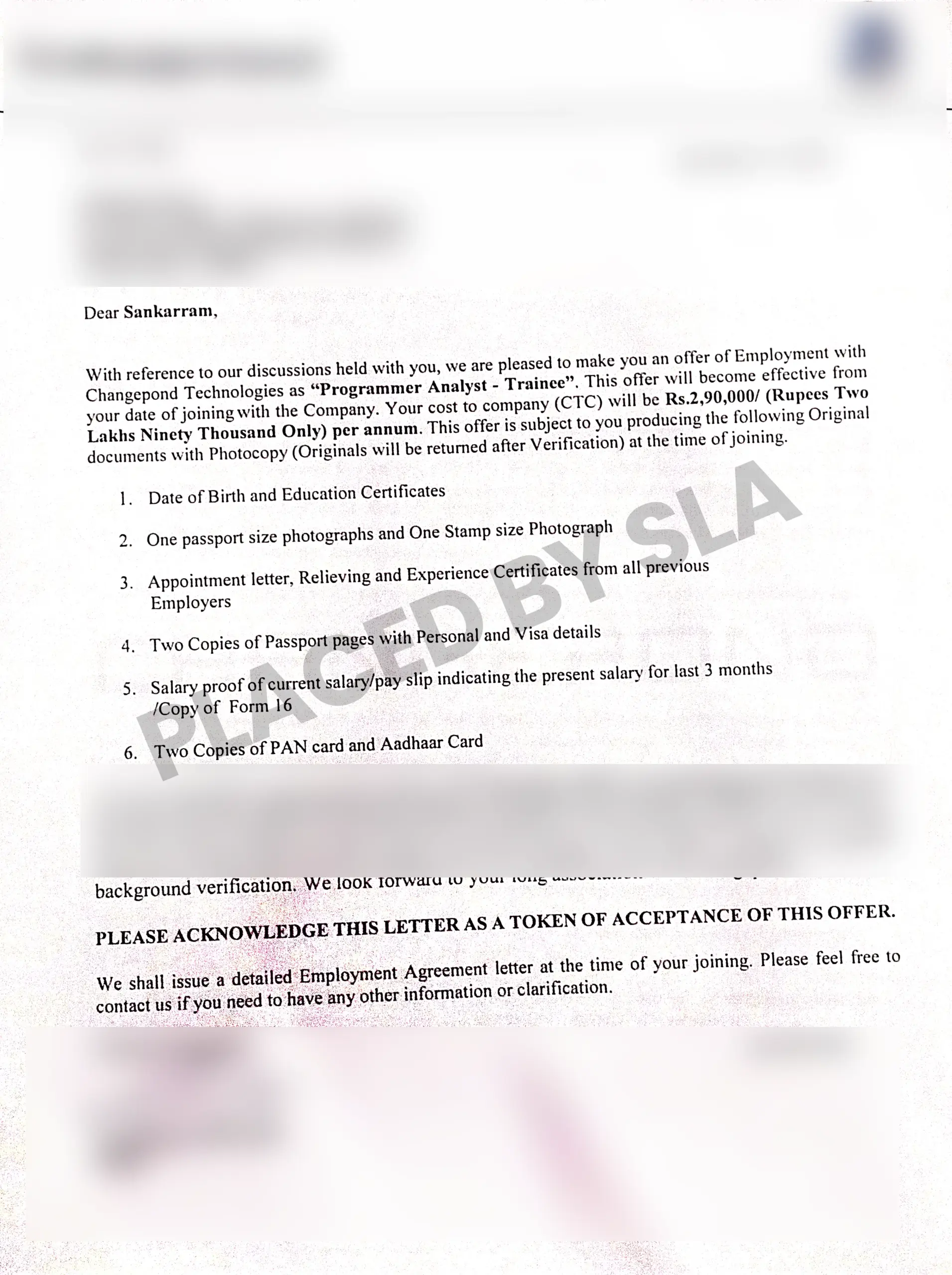 Offer Letters