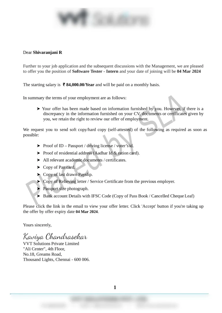 Offer Letters