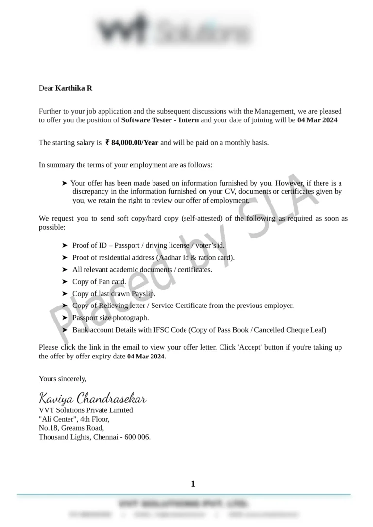 Offer Letters